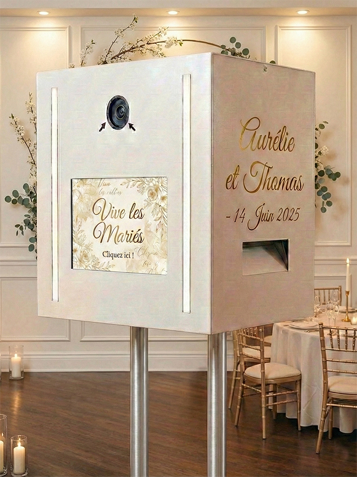 Oubliez les accessoires en plastique et les photos floues. Offrez à vos invités une expérience studio élégante qui sublime votre réception et capture la vraie magie de la fête.